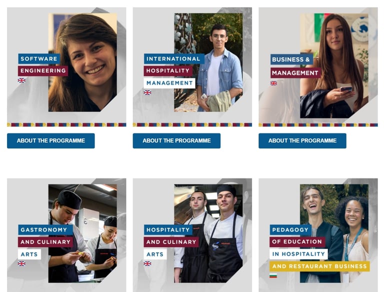 Guiding international students through educational opportunities across Europe with expert advice. Bulgaria only for the February 2026 session (Bulgaria). # SOFTWARE Engineering, INTERNATIONAL Hospitality, BUSINESS & Management, GASTRONOMY & Culinary Arts, HOSPITALITY & Culinary Arts